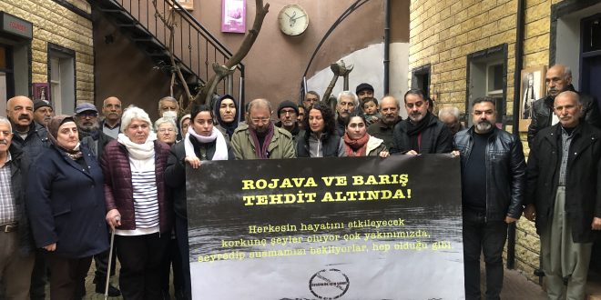Sanatolia Kolektif Atölyeler bahçesinde yapılan açıklamaya çok sayıda sanatçı katıldı. Açıklamada “Rojava ve Barış tehdit altında” pankartı açılırken basın metnini Sanatolia üyesi Gülhan Bişeng ve Yazar Adil Okay ortaklaşa okudu.