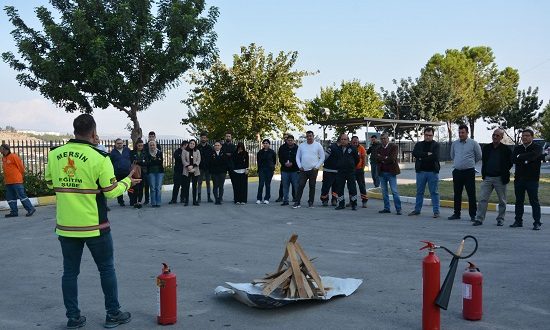 Mersin Büyükşehir Belediyesi’nin değişik birimlerinde çalışan personelleri, olası yangın olaylarında nasıl davranılması gerektiği, özellikle yangın tüplerinin ne şekilde kullanılacağı konularında, program dahilinde bilgilendirilmeye devam ediliyor.