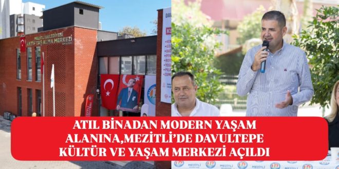 Mezitli Belediyesi tarafından restorasyonla yeniden dönüştürülen Davultepe Kültür ve Yaşam Merkezi halkın hizmetine açıldı.Atıl durumda olan bina, Mezitli Belediye Başkanı Ahmet Serkan Tuncer’in talimatları doğrultusunda gerçekleştirilen restorasyon çalışmalarıyla yeniden hayat buldu. Merkez, modern bir eğitim ve etkinlik alanı olarak vatandaşların hizmetine sunuldu.