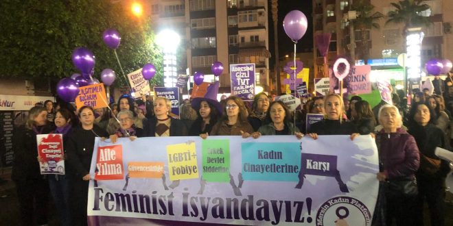 Mersin’de kadınlar, Mersin Kadın Platformu’nun çağrısıyla Kushimoto Sokağın’da bir araya geldi. Yürüyüşe kadın kurumlarının temsilcileri ile çok sayıda kadın katıldı.