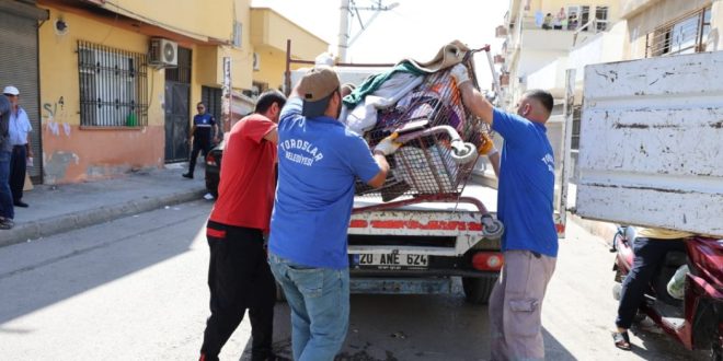 Kullanılamaz durumdaki giysi ve eşyalar, Temizlik İşleri Müdürlüğü ekiplerince toplanarak Fen İşleri Müdürlüğü’nün deposunda muhafaza altına alındı. Ayrıca, üç seyyar satıcının tartısına el konularak, seyyar satıcılıktan dolayı cezai işlem uygulandı.